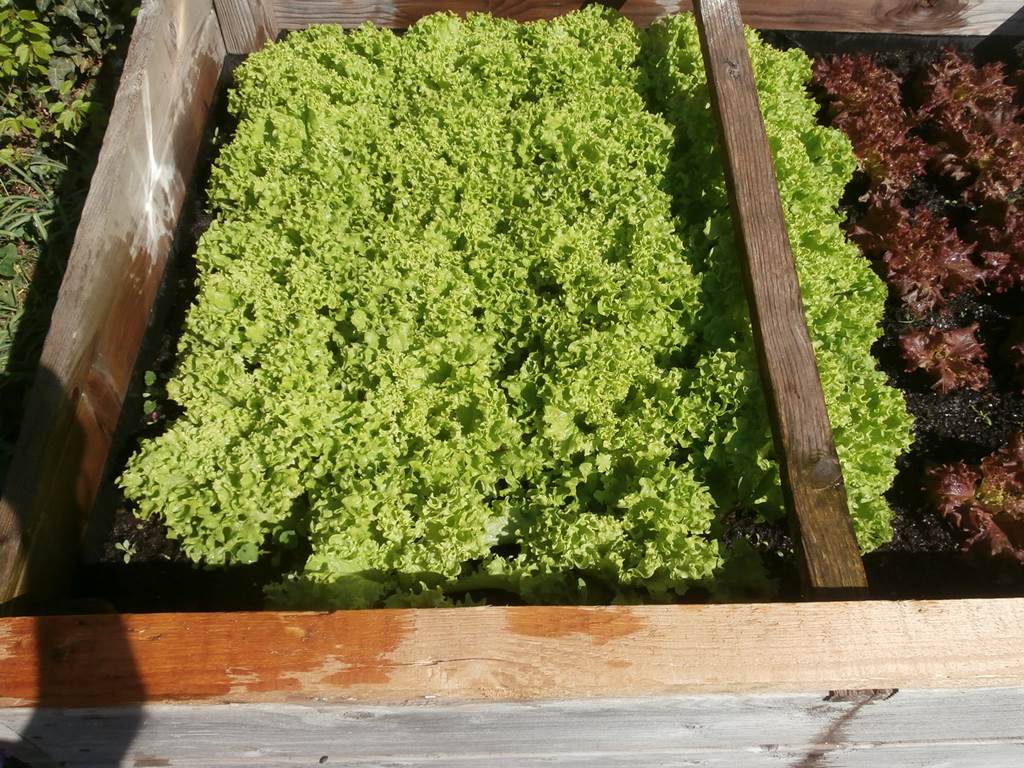 Ende April ist der Lollo Bionda fast aufgegessen und der Lollo Rosso erntereif. So haben wir bis Ende Juni immer frischen Salat.
