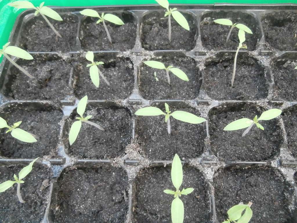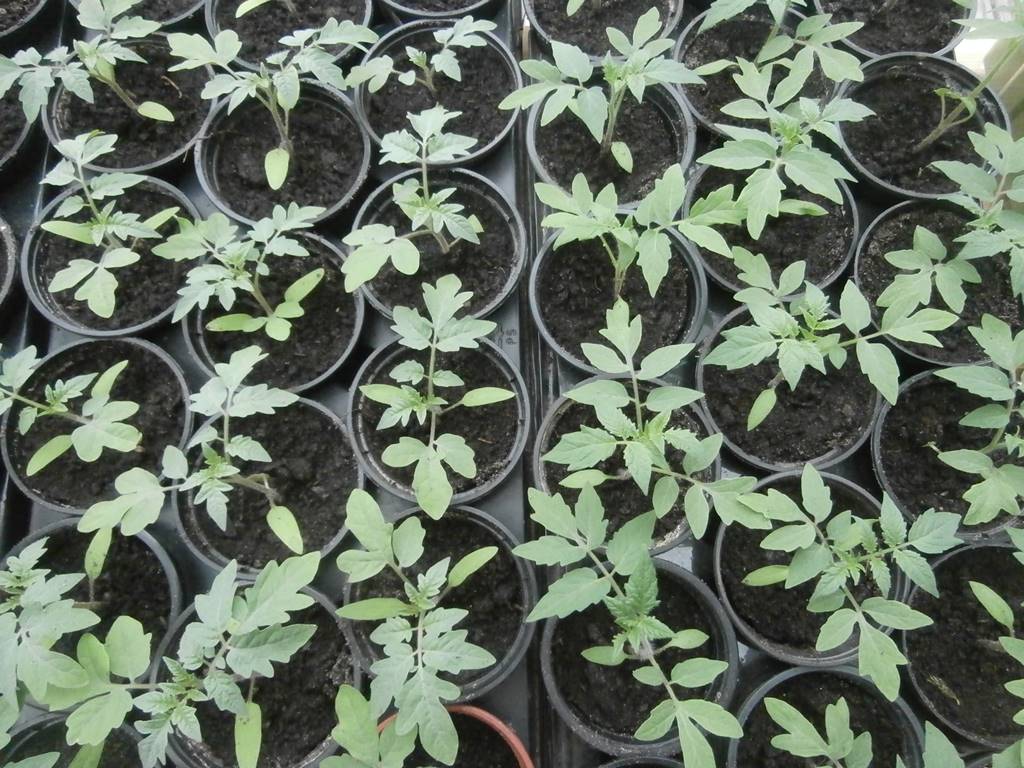 Nach ca. 3 Wochen kommen die jungen Tomatenpflanzen in Töpfe. Sie lieben Licht und Wärme und regelmäßiges Gießen.