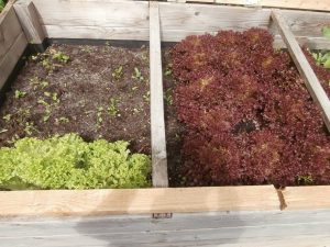Nach weiteren 2 – 3 Wochen ist der erste Salat erntereif. Das hängt ein wenig von der Witterung ab. In kalten Frühjahren dauert alles etwas länger.