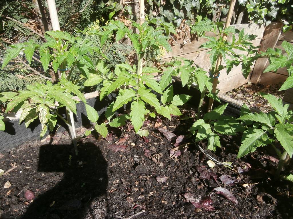 Nach weiteren 3 bis 4 Wochen im Topf sind die Tomatenpflanzen Anfang Mai soweit. Jetzt nur noch die Eisheiligen abwarten und dann ab ins Hochbeet.