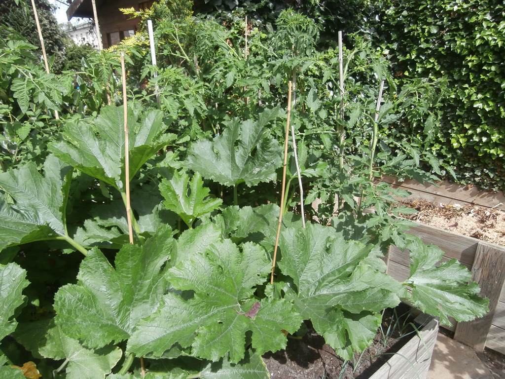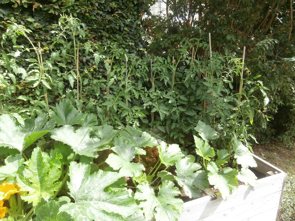 Mitte Juni sieht das Ganze schon recht üppig aus. Die letzten Salate werden bald geerntet sein und die ersten Zucchini kündigen sich an. Auch die Tomaten haben schon reichlich Fruchtansätze gebildet.