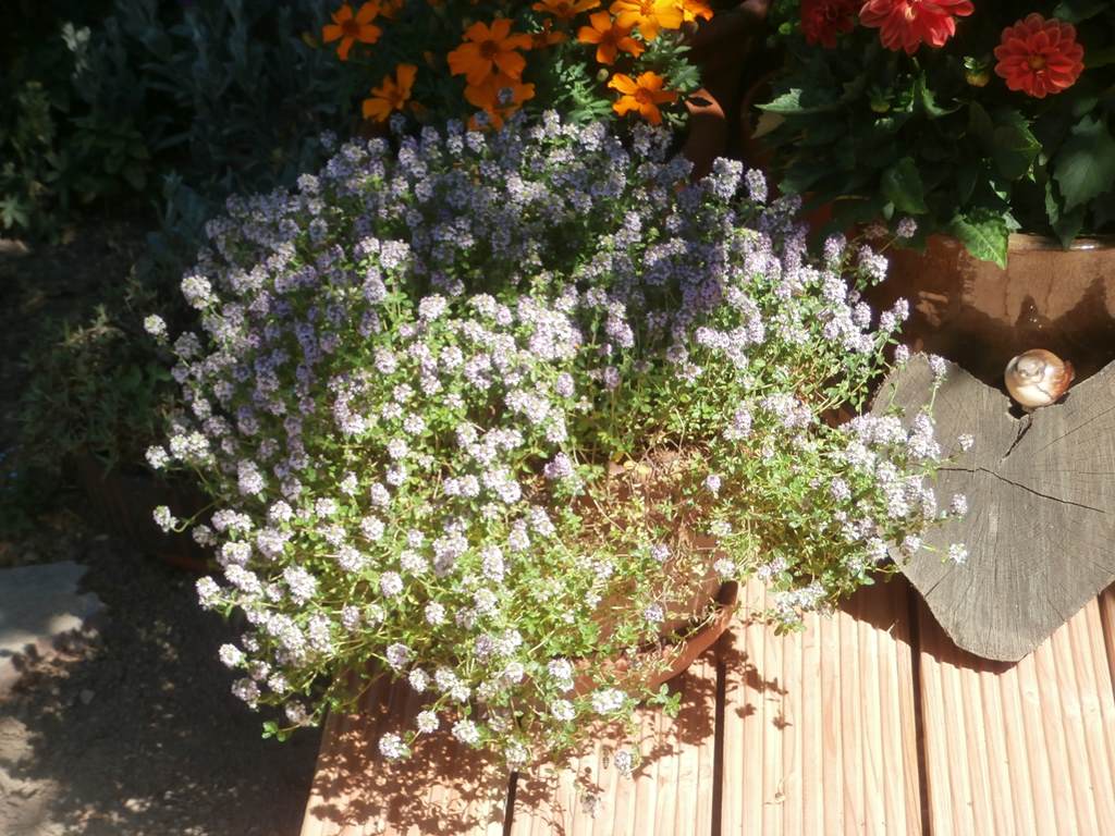 Ich habe mir mal ein Thymian-Pflänzchen aus den Bergen mitgebracht. Es wächst jetzt schon ein paar Jahre im Topf (gelegentlich umtopfen) und überwintert auch problemlos.