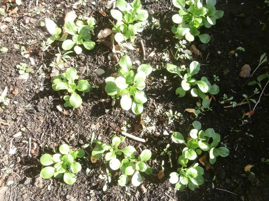 Anfang September ziehe ich den Feldsalat in kleinen Töpfen vor und pflanze ihn nach ca. 4 Wochen ins Hochbeet überall an freigewordene Stellen. Ich nehme aber nur die kleinblättrigen Sorten wie Dunkelgrüner Vollherziger oder Verte de Cambrai.