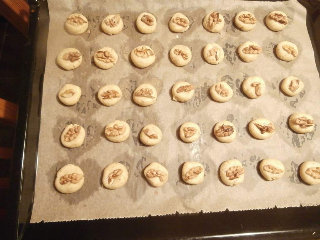 - Gemahlene Walnüsse, Ei und Salz dazugeben und alles zu einem glatten Teig verkneten.