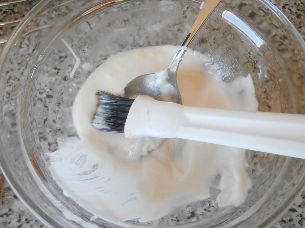 - Immer wieder mit aufgeschlagenem Eiweiß als „Klebstoff“ einpinseln.