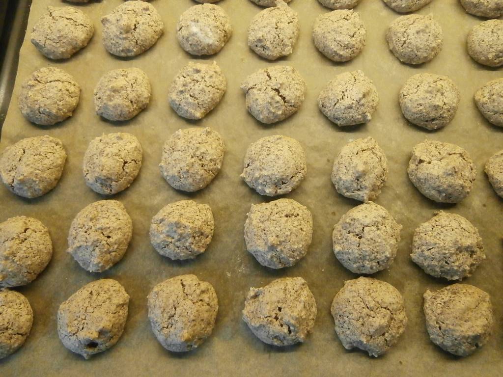- Mit leicht bemehlten Händen kleine Kugeln formen und auf das Backblech setzen.